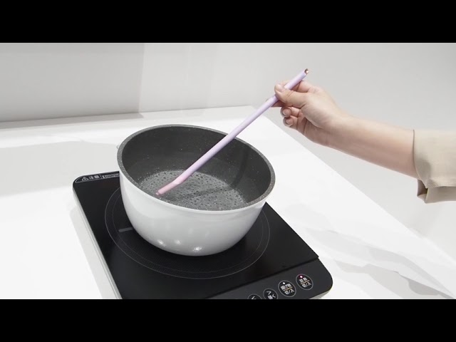 アイリスオーヤマ「瞬熱真空釜炊飯器」に採用したヒートパイプ技術のデモ。熱が瞬時に全体へ伝わることを応用