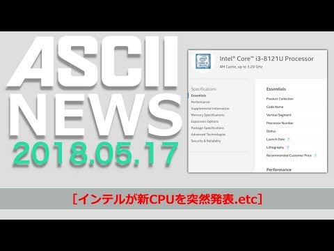 インテルが新CPUを突然発表▽ミルスペックスマホTOUGHBOOK『今日のASCII.jp話題のニュース』2018年5月17日配信