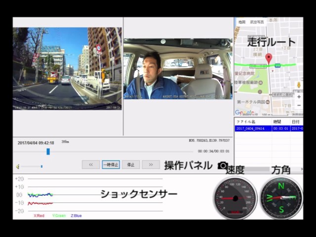 サンコーレアモノショップ【高画質前後撮影GPSドライブレコーダーPremier】昼間の走行