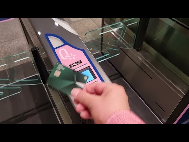 難波駅のセキュリティゲート型専用自動改札機をVisaのタッチ決済で通過する様子 -Impress Watch