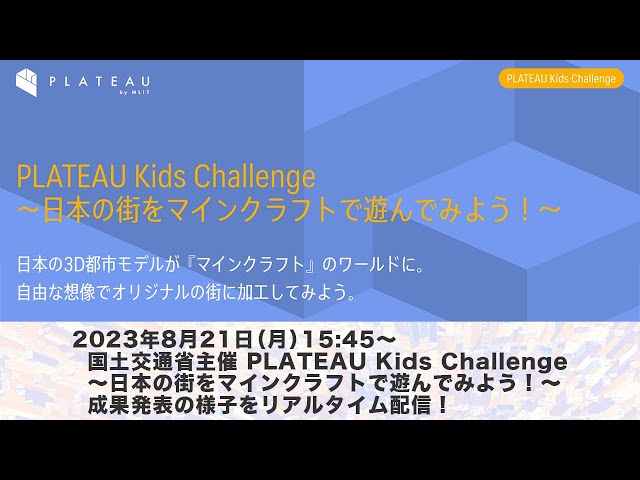 PLATEAU Kids Challenge(プラトー キッズ チャレンジ)~日本の街をマインクラフトで遊んでみよう!~ 成果発表リアルタイム配信(2023年8月21日)