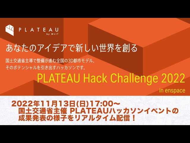 「PLATEAU Hack Challenge 2022 in enspace」成果発表リアルタイム配信(11月13日)