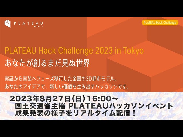 「PLATEAU Hack Challenge 2023 in Tokyo」成果発表リアルタイム配信(2023年8月27日)